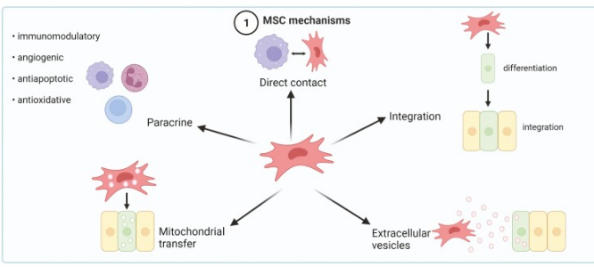 间充质干细胞还具有通过抑制T细胞活化和增殖、抑制树突状细胞成熟、减少B细胞活化和增殖、抑制NK细胞增殖和细胞毒性以及促进调节性T细胞生成来调节适应性和先天免疫系统的能力。间充质干细胞还具有在促炎和抗炎表型之间切换巨噬细胞的能力,这在一定程度上是由吞噬作用介导的。